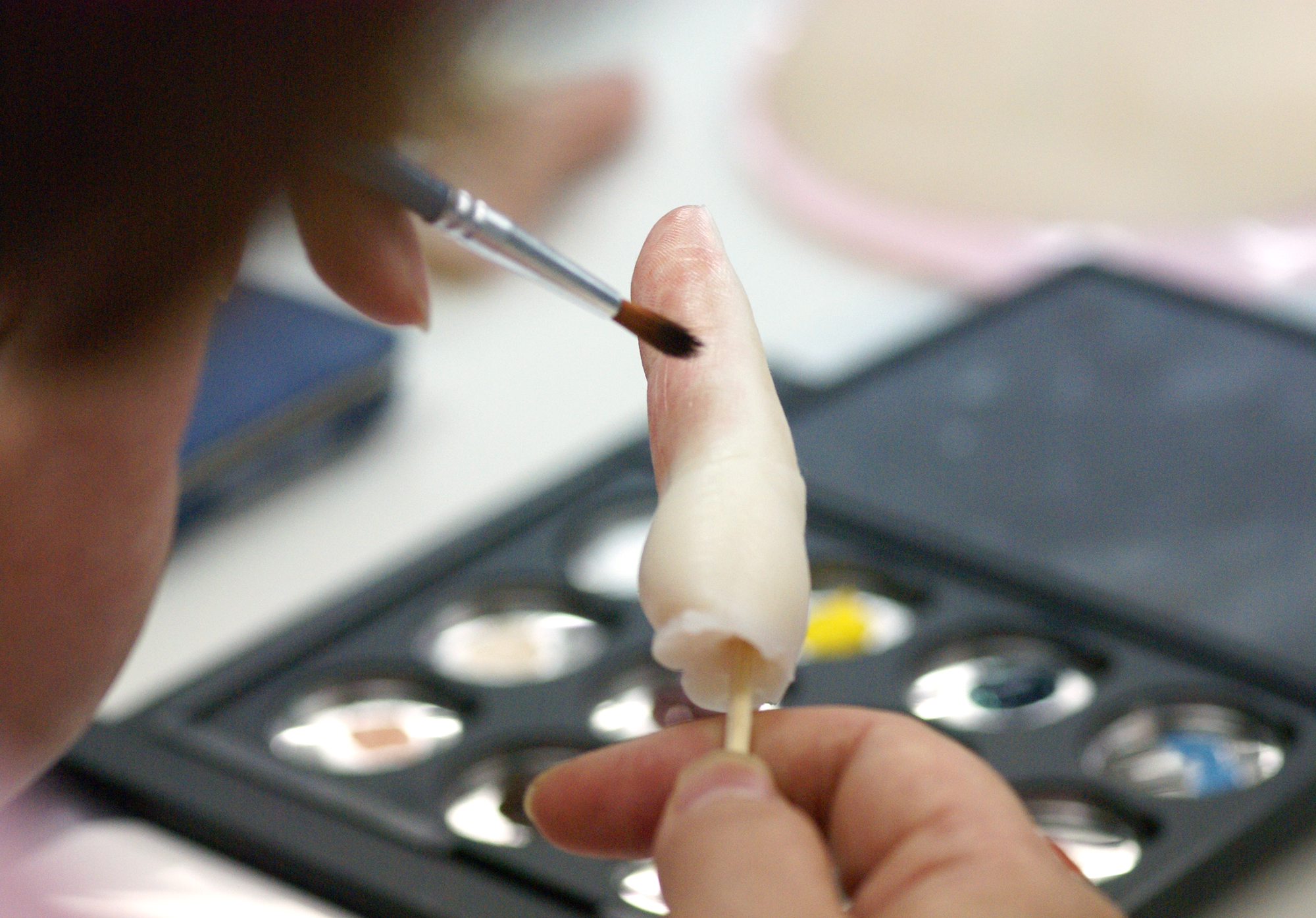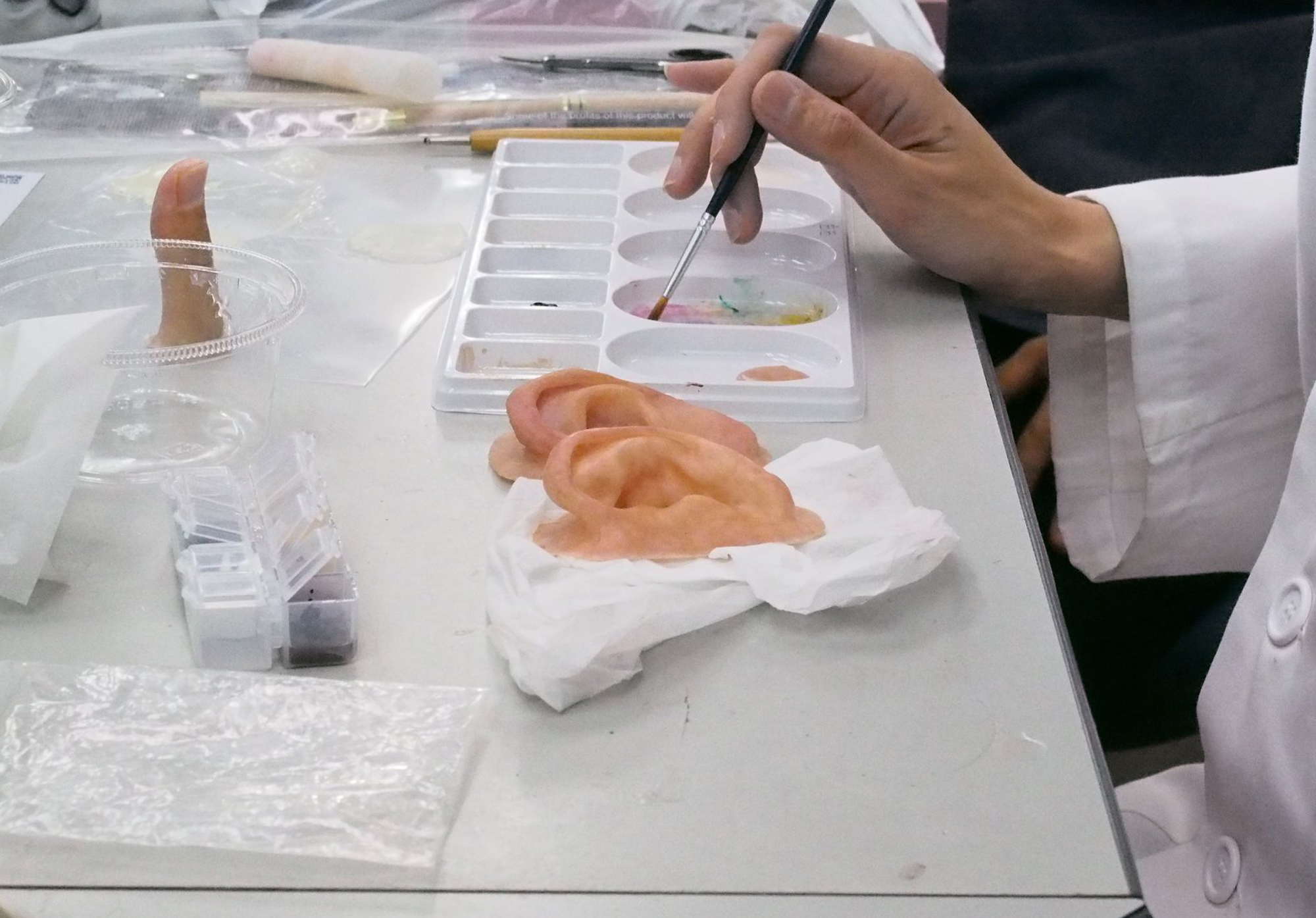 当コースでは指や耳等の部位をピックアップし、実際に造形、着色することで、エピテーゼがどのようにして作られていくのか基本工程を理解、特に着色技法について基礎を中心に修得していただけるため、エピテーゼの活動をこれから始める方に入門編として相応しい内容となっております。
