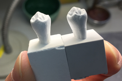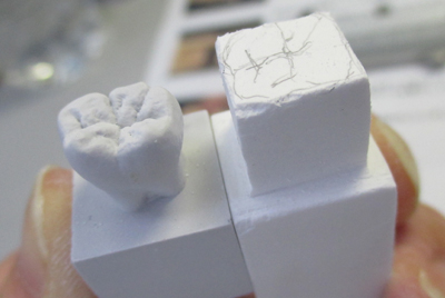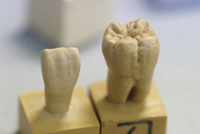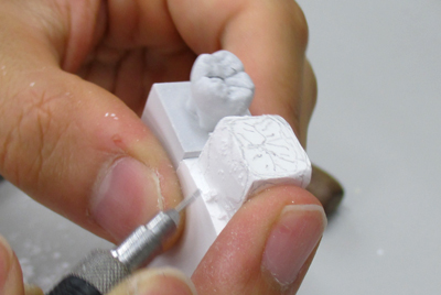 気付いたらもう夕方に。どうやら「彫る」という作業は人を惹きつける何かがあるらしく、とことん無心になれるようです。もっと細部まで彫り込んでみたかったのですが、生憎の時間切れとのことで持ち帰り宿題にしてみます。今回のカービングによって、歯の形状をじっくり観察でき、改めて奥深さを垣間見る事が出来たような、そんな気がしました。