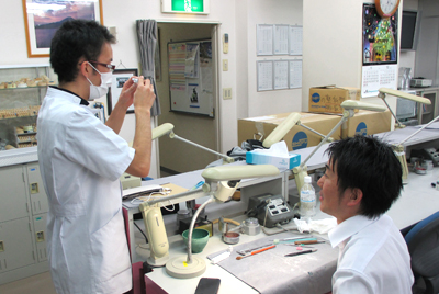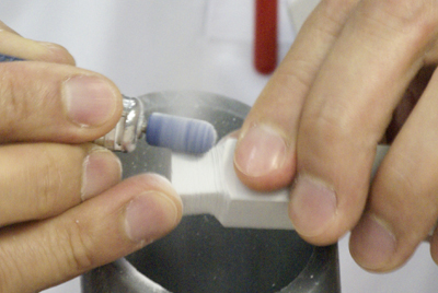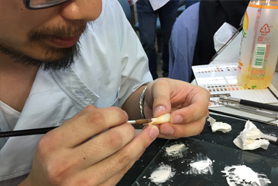 デモが終了し、「さあ、みなさん!彫りましょう!」そんなノリで始まったMCS苦楽部。コンセプトはまだ何もありません。歯科技工士に限らず、カービングやりたい人は誰でもOK。何やってもよし、エンジンやポイント類は充実してるよ、じゃんじゃん使ってOKだよ!石膏棒もあるよ!サンプルあるよ!そんな感じで、ほーれほれ彫れ!と合いの手が聞こえてきそうな勢いでした。